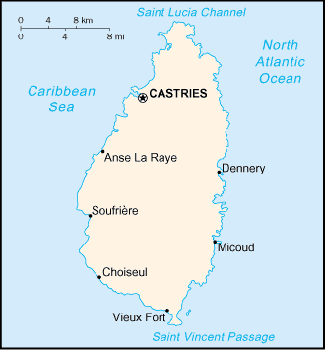 CIDADES: Castries, Vieux Fort, Soufrière.